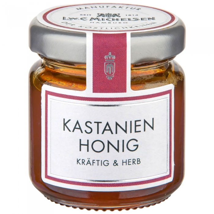 Kastanien-Honig ist einer der ersten Trachtenhonige eines Bienenjahres. Die weißen, leicht rosafarbenen Blüten der Kastanie blühen im April und Mai. Mit seiner fast schwarzen Tönung und seinem kräftigen-herben Geschmack, die ihm die eingenen Bitterstoffe verleihen, ist unser Kastanien-Honig ein ganz außergewöhnlicher Genuss für Honigliebhaber.