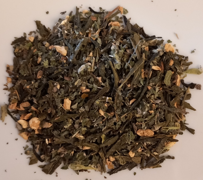 Zutaten: Grüner Tee, Ingwer, Apfelminze, Salbei, Griechischer Bergtee