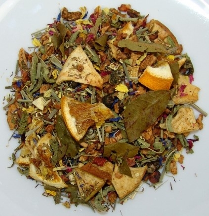 Zutaten: Apfelstücke, Rooibush-Tee, Zitrusscheiben, Lemongras, weißer Tee Tai Mu Long Zhu (4%), Zitrusschalen, Apfelecken, Aroma, Zitronenverbene, Sonnenblumenblütenblätter, Zitronenmyrte, Kornblumenblütenblätter, Rosenblütenblätter